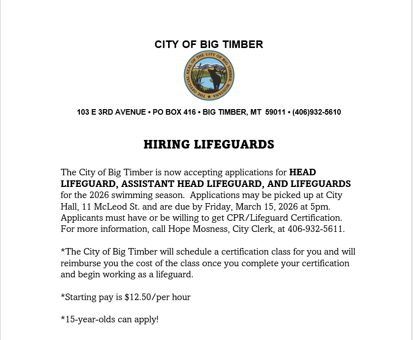PLEASE CALL CITY HALL @ 406-932-5610.